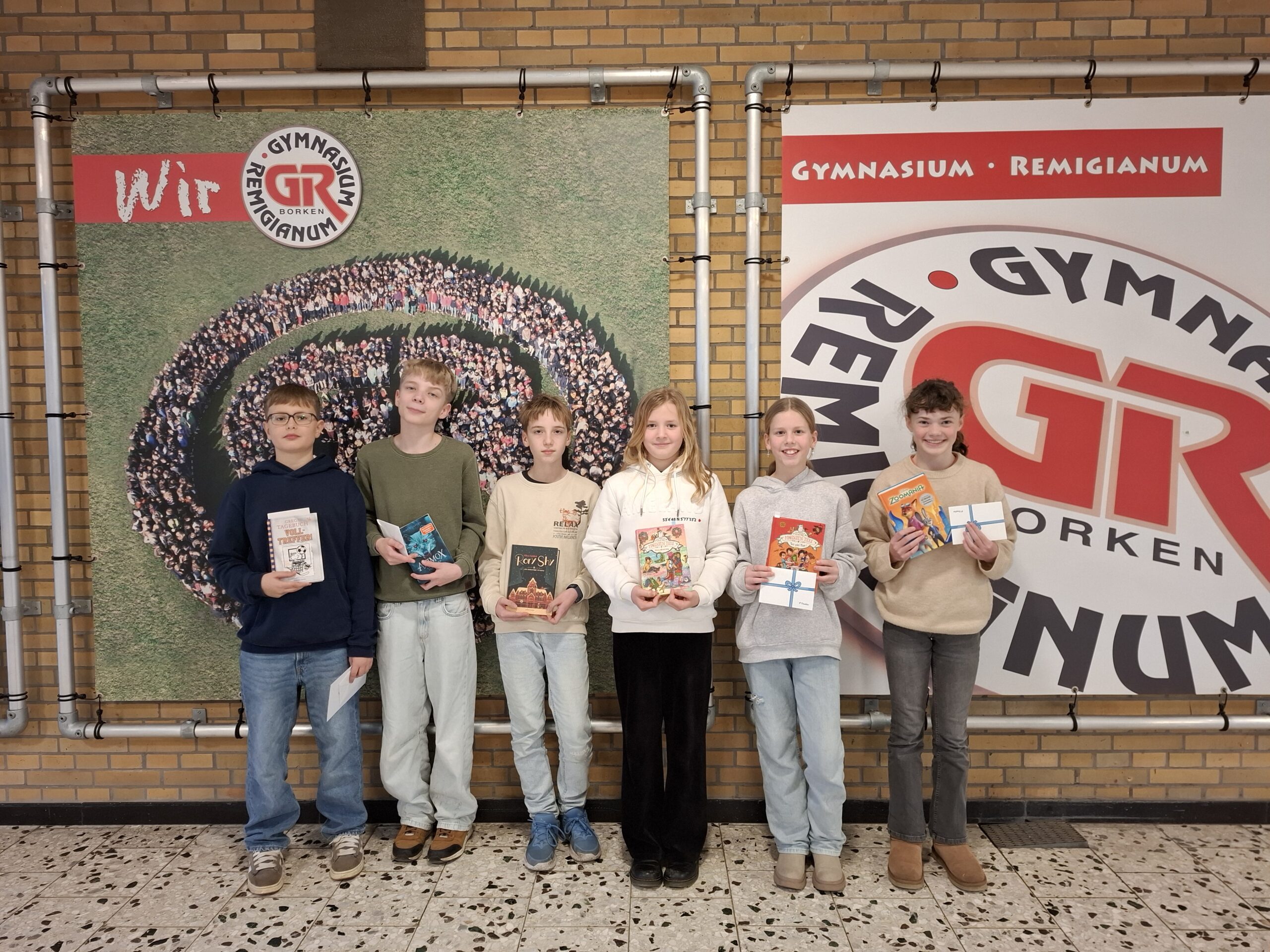 Schulsieger wurde Oskar Schwering. Er wird das Remigianum in der nächsten Runde auf Kreisebene vertreten. Oskar las aus „Gregs Tagebuch 16: Volltreffer“ von Jeff Kinney.