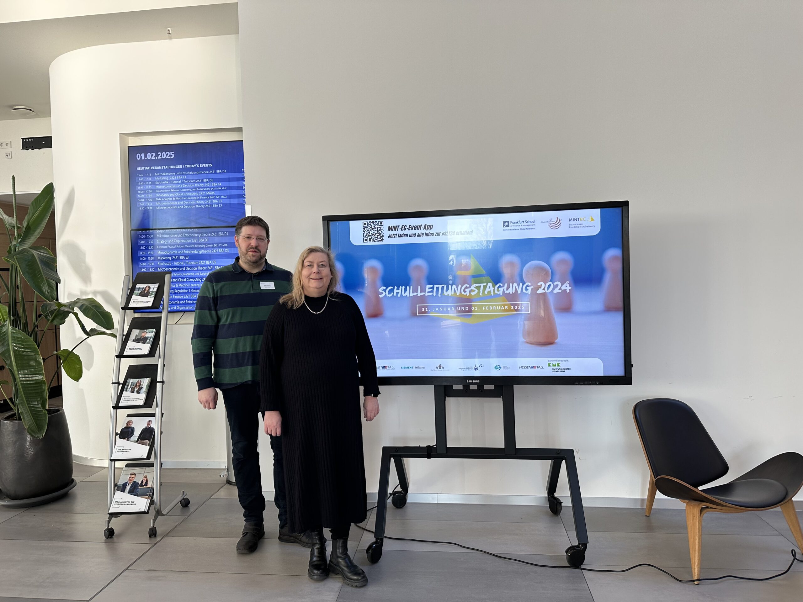 Unsere Schulleiterin Birgit Prangenberg und unser MINT-Koordinator Volker Lohmann sind am Wochenende bei der MINT-EC-Schulleitungstagung in Frankfurt am Main. Dort tauschen sich Schulleitungen und MINT-Verantwortliche von MINT-EC Schulen aus ganz Deutschland über aktuelle Entwicklungen in der MINT-Bildung aus.